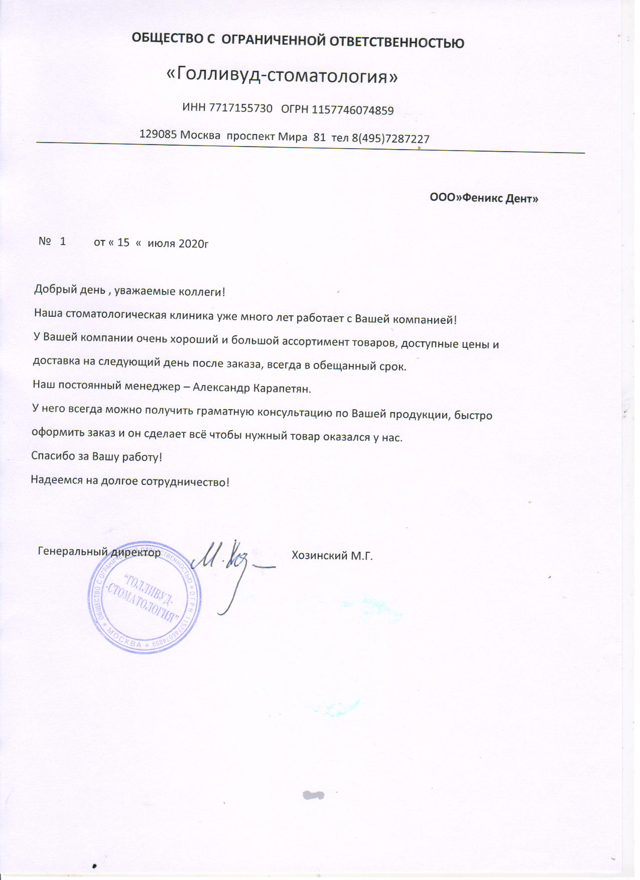 Наша стоматологическая клиника уже много лет работает с Вашей компанией! У Вашей компании очень хороший и большой асортимент товаров, доступные цены и доставка на следующий день после заказа, всегда в обещанный срок. Наш постоянный менеджер - александр Карапетян. У него всегда можно получить грамотную консультацию по Вашей продукции, быстро оформить заказ и он сделает всё, чтобы нужный товар оказался у нас. Спасибо за Вашу Работу! Надеемся на долгое сотрудничество!