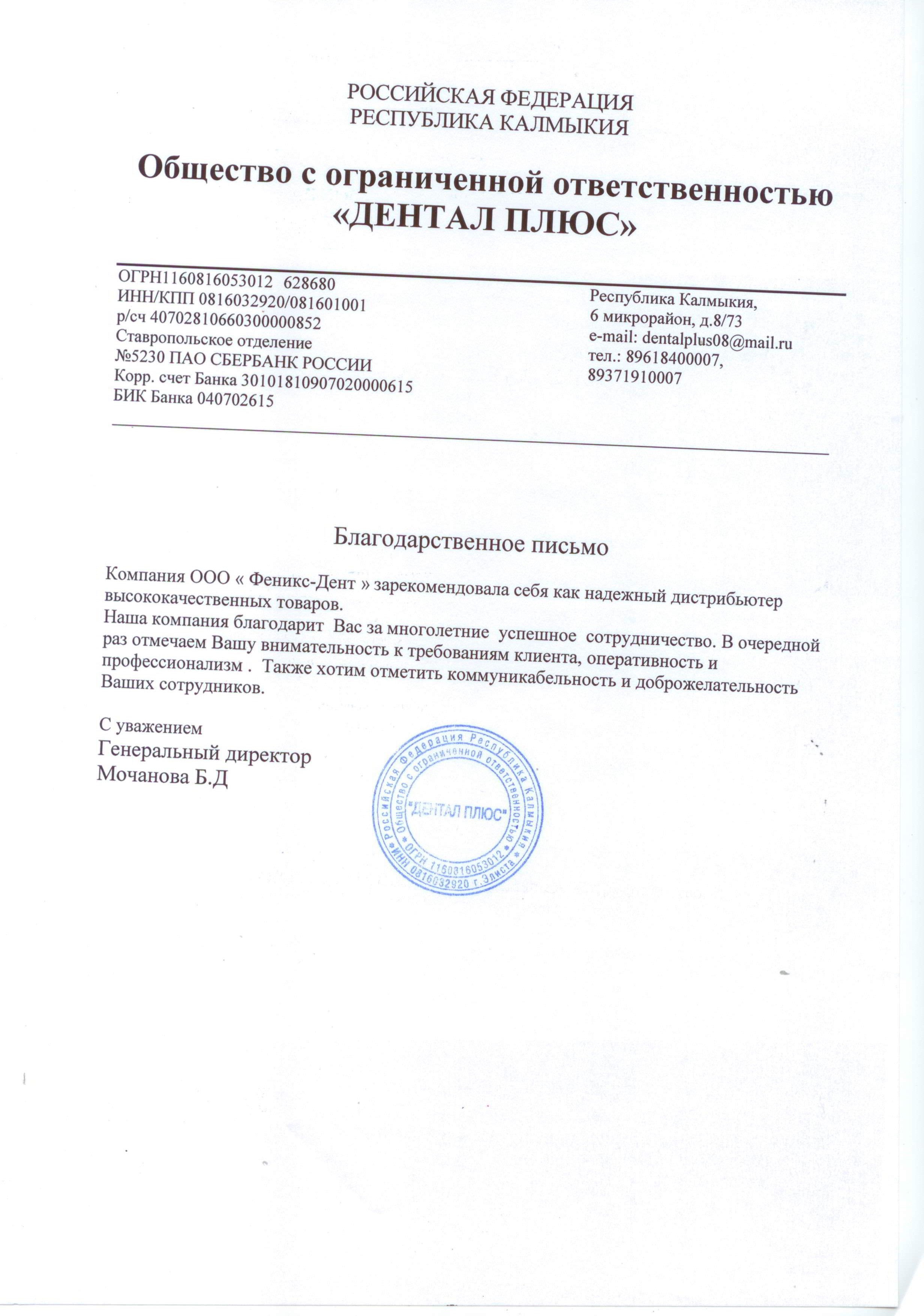 Компания "Ника Дент" зарекомендовала себя как надежный дистрибьютор высококачественных товаров. Наша компания благодарит Вас за многолетнее успешное сотрудничество. В очередной раз отмечаем Вашу внимательность к требованиям клиента, оперативность и профессионализм. Также хотим отметить коммуникабельность и доброжелательность Ваших сотрудников.